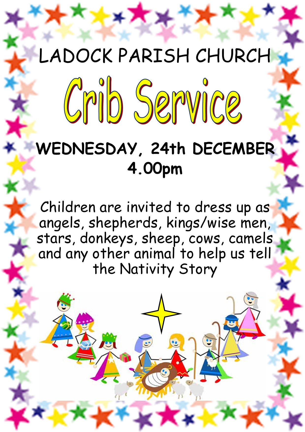Wednesday 24 December, Christmas Eve: Crib service, 4.00 pm, Midnight Mass 11.30 pm.