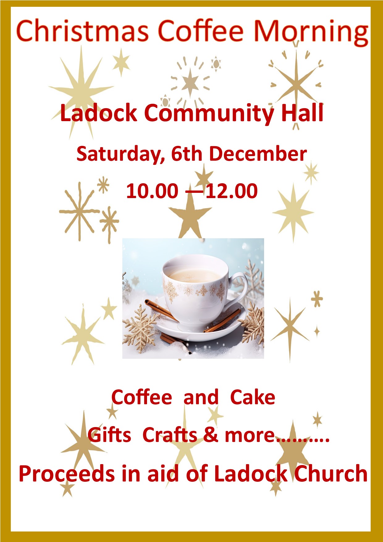 Saturday 6 December: Christmas Coffee Morning in the Hall, 10.00 – 12.00 (see poster)